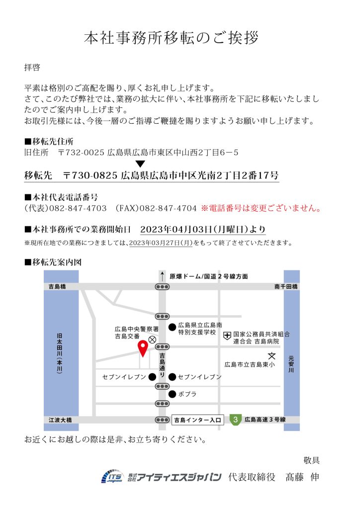 本社事業所移転のお知らせ